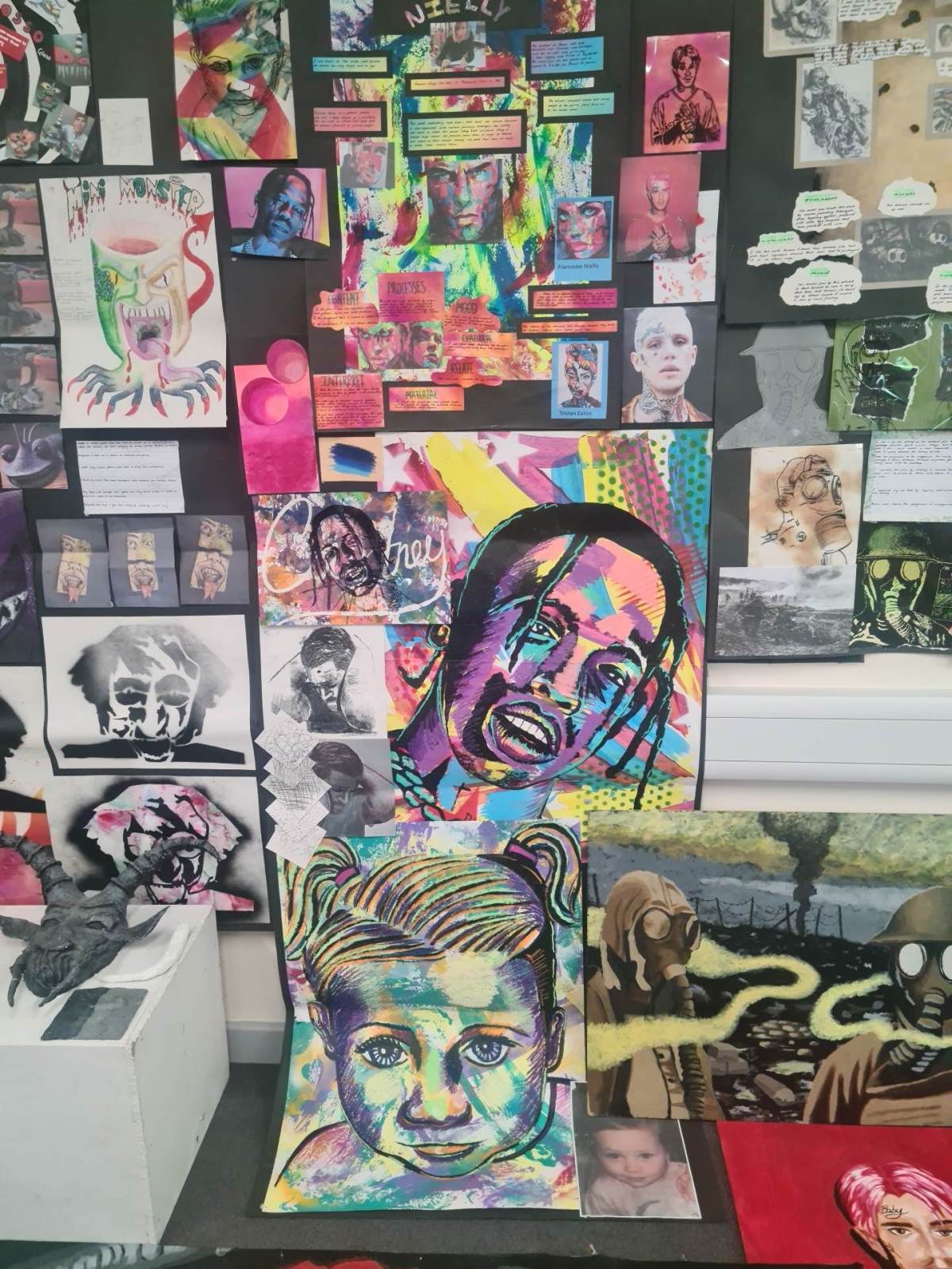 The Post-16 Centre has had the privilege this week of hosting the Year 11 Gallery of GCSE Art. Transforming the common room into a beautiful display of the incredible talent of the Bridge Central Year 11 students. Visited by staff and students alike as well as external moderators, it is a credit to Miss Blyth and her ability to take the students’ interests and create something special with them.